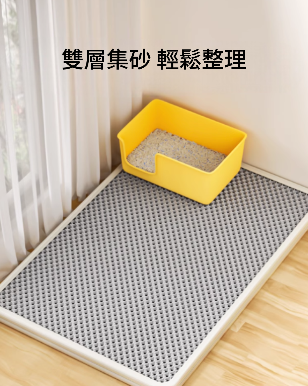別怕~這張雙層蜂巢貓砂墊幫你收好收滿。