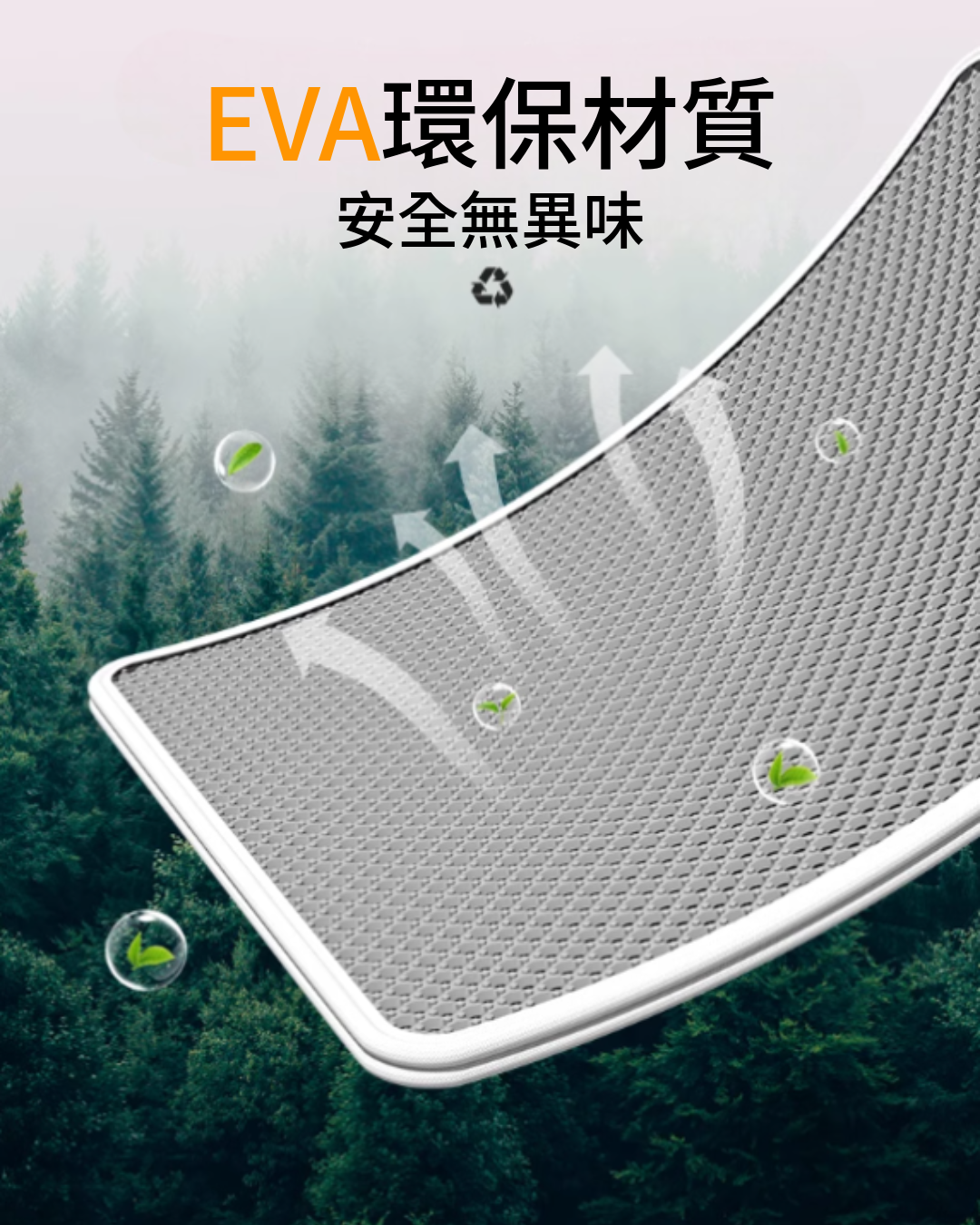 EVA環保材質:軟彈好踩、低氣味,可彎折不易變形。
